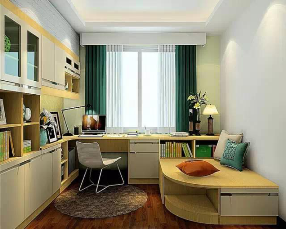 安靜是書房必備的,安靜的環境能夠快速靜下心來,進入工作的狀態, 才能辦事高效。在裝修時,可以選擇一些隔音和效果比較好的裝飾材料,在書房的天花板上,可以選擇用吸音的石膏來進行吊頂,而書房的墻壁可以用軟包裝裝飾,比如墻紙;地面同樣可以使用吸引效果好的地毯;書房的窗簾需要選擇質地比較厚的材料;這樣可以隔絕外面的噪音,從而進入一個相對安靜的環境