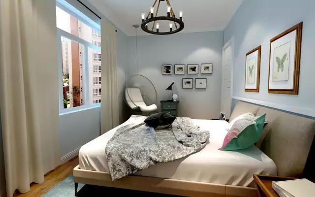 淺藍(lán)色墻面,沉靜自然,用在臥室最合適不過(guò)。