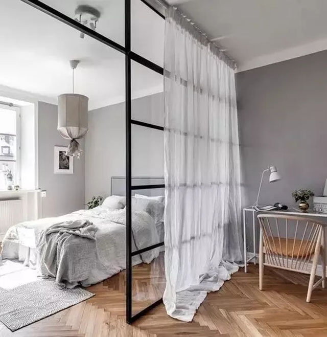 還有一種竹編的屏風現在也很流行,放在床前,可以在臥室里再隔出一個看書的區域。