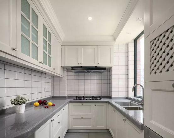淺藍搭配白一點的色調更適宜,打造廚房的高級質感。