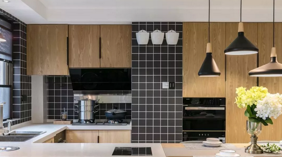 原木色的櫥柜,放置在廚房,顯得比較自然,較有小時候的味道