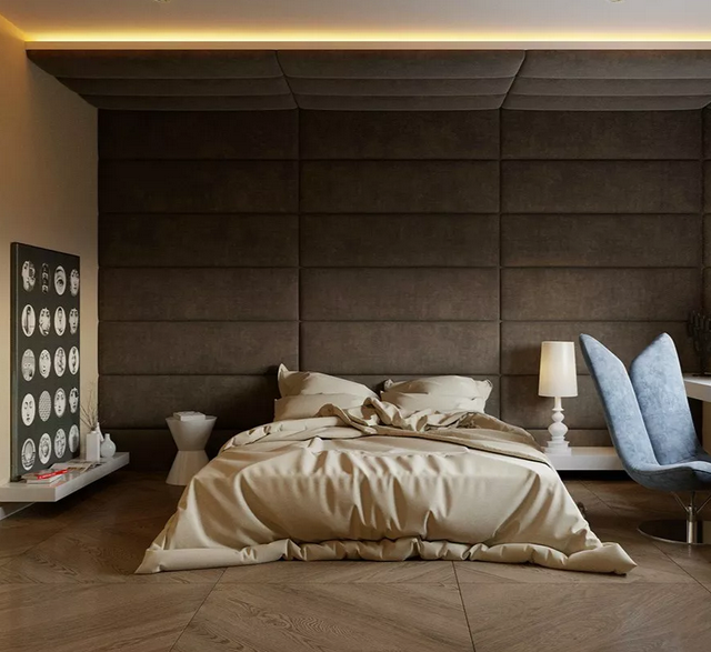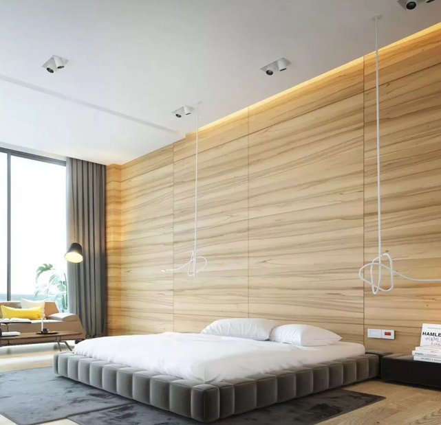 近年來(lái)北歐、日式風(fēng)格逐漸盛行,原木也開(kāi)始成為設(shè)計(jì)上的主打材質(zhì), 用木飾面代替相框、裝飾畫(huà)來(lái)進(jìn)行臥室裝扮,新意十足。
