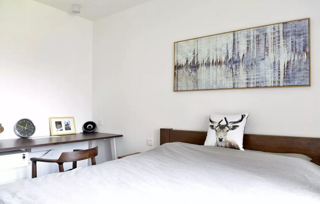 主臥空間,休息家小型工作區,簡單,清爽,干凈,專門買了大大的床,去掉多余裝飾只留了簡單線條裝飾畫,