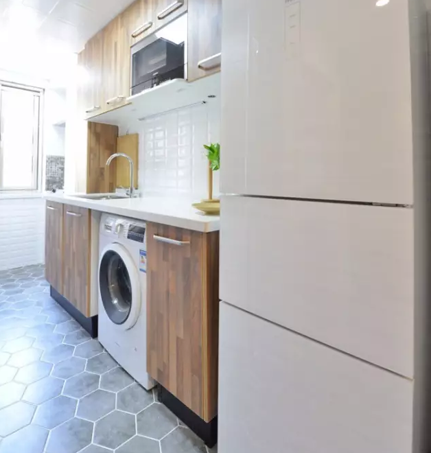 注意:一定要事先將洗衣機的尺寸量好,這樣才可以進行下一步定做櫥柜的工作,另外,廚房油煙過重也會影響洗衣機使用壽命。