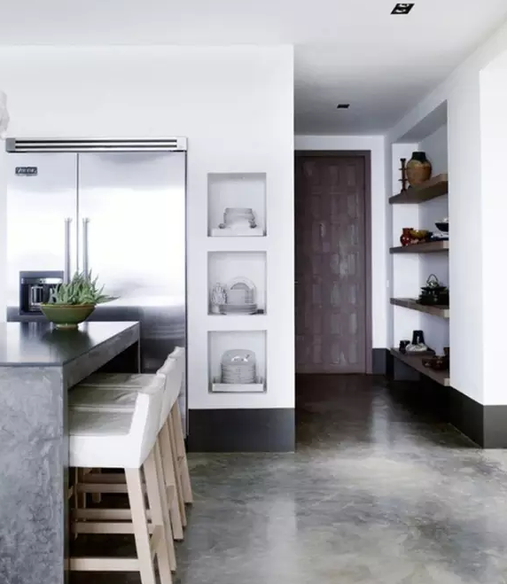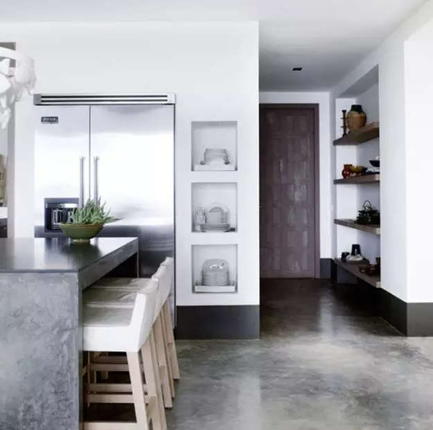 石材踢腳線一般以瓷磚為主,使用起來美觀大方,格調十足,同時也具備防水防潮、容易清洗的特點,因而受到了很多家庭的青睞。瓷磚踢腳線選擇和地板或者墻面相近的色系,是一種保險而不會出錯的搭法;而利用強烈的色彩反差來勾勒輪廓,也可以使空間看上去更有界限感,檔次和品位瞬間凸顯。