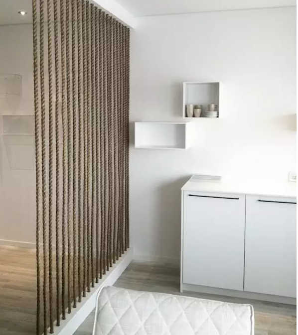 ▲麻繩屏風,軟化棱角分明的冷色空間