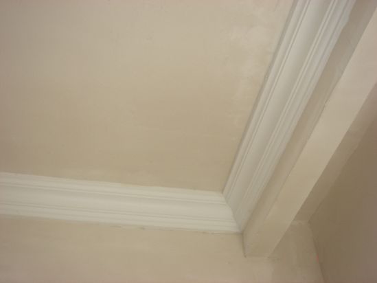 石膏線是所有陰角線中最物美價廉、便宜耐用的,因此在裝修中極為常見。石膏線施工簡單,本身又綠色環保,最常見的施工方法有兩種,一是用釘子將它釘在墻角,之后讓油漆工修補;一是直接用塊粘粉進行粘貼。