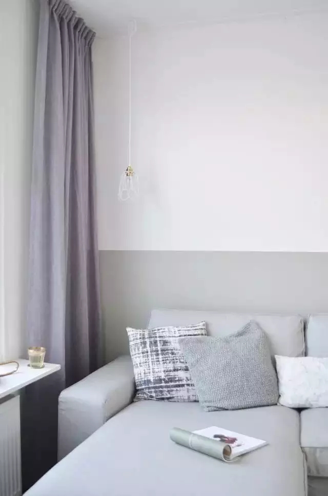 ▲將墻壁的下半部漆上較深的顏色,上半部的墻則和天花板同色,同樣以延伸感制造錯覺。