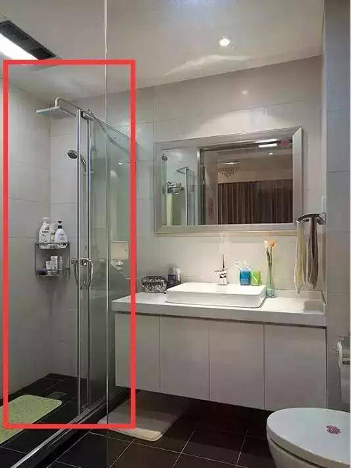 不論是不是干濕分區的衛生間,在地面瓷磚鋪貼時,要格外注意地面的排水坡度,有些家里的排水坡度不好,洗完澡地面總是還有很多積水,用刮水板在把水趕到地漏位置,但畢竟麻煩,而且如果長時間存水,勾縫劑、打膠的位置也容易發霉變黑的。