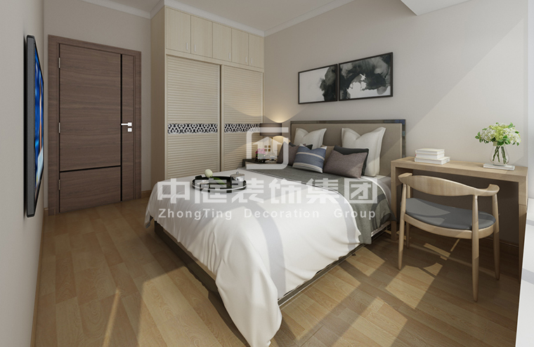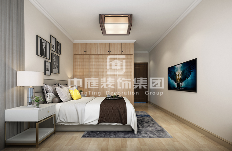 臥室照片墻怎么做?照片墻的處理最簡單的方法就是將幾幅風格類似、色調一致的相片用一樣材質的相框裝裱,然后有規律的組合擺放在臥室墻壁上。上面臥室床背景墻效果圖中的臥室空間照片墻的處理就是典型的案例,因為空間整體相對素雅干凈,照片墻中照片的選用為黑白色調,顏色百搭,不會出錯,且與整個灰白墻面配合融洽。幾幅相框橫豎排放,但整體結構規則,因此不顯突兀雜亂。