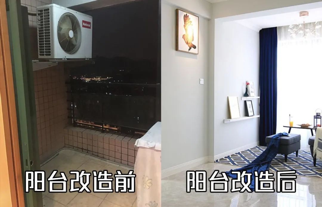 經(jīng)過改造后,陽臺和客廳融為一體,不僅客廳寬敞,陽臺也變大了,而且功能豐富,是一個室內(nèi)的生活陽臺。