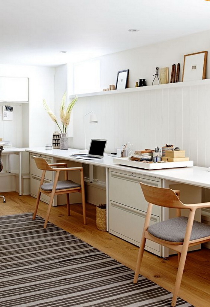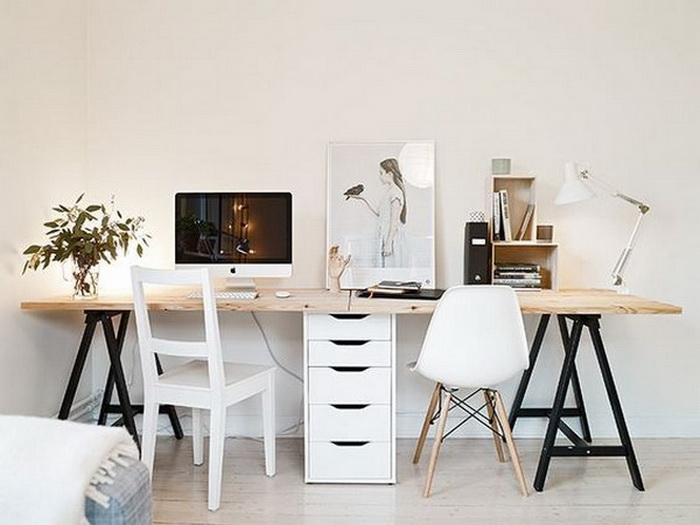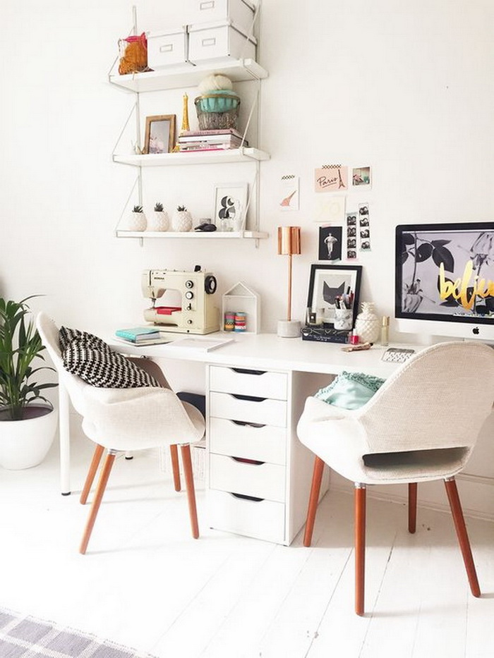 對(duì)于兩個(gè)人書桌布置,可以對(duì)著坐、并排坐或者背靠背,也可以L型轉(zhuǎn)角坐,看個(gè)人喜好和具體空間格局而定。