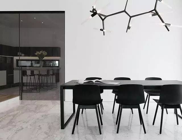 ▲餐桌上方的形如樹枝狀的創(chuàng)意吊燈是很好的時尚助攻,還帶來了幾分藝術(shù)的因子。