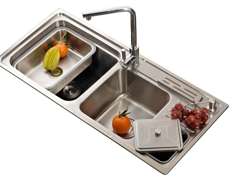 在購買水槽的時候,很多人都不知道買單盆還是雙盆。如果櫥柜比較小,最好買單盆。但也要看個人習慣,如果平常洗菜的時候喜歡將菜全泡在水里,建議最好買雙盆。因為單盆每次注水需要很長時間, 費時間也費水。現在有一種單盆水槽,上面有可隨時移開的瀝水籃,使用起來比較方便。