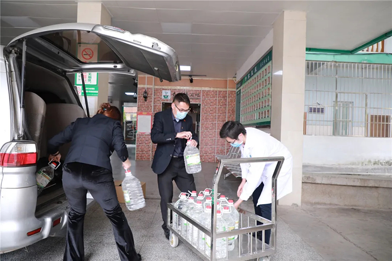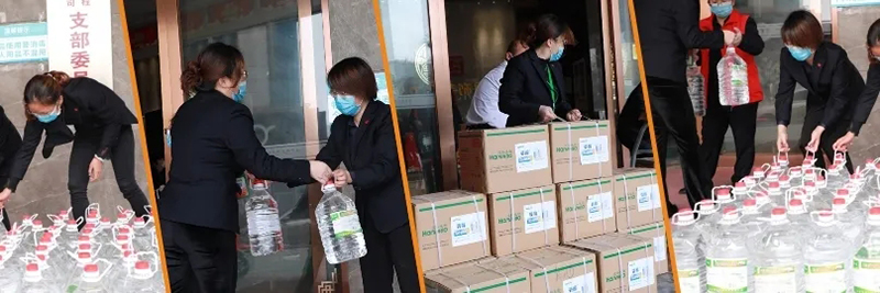 通過社會各界朋友們愛心提供的渠道,我們共采購了抗疫物資:一次性醫用口罩(5000個)、消毒水(5L/200桶)、醫用酒精(5L/200桶)以及礦泉水(3600瓶)、八寶粥(1200瓶)、高鈣奶(1200盒)、餅干(100箱)。