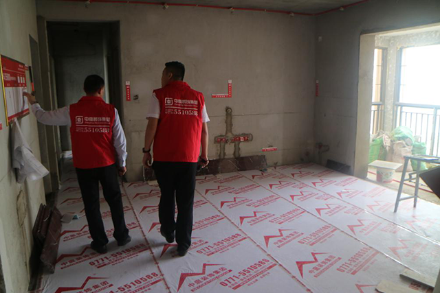 巡檢組來到在建工地現場,積極檢查各處的施工工藝,確保每到工序的質量。
