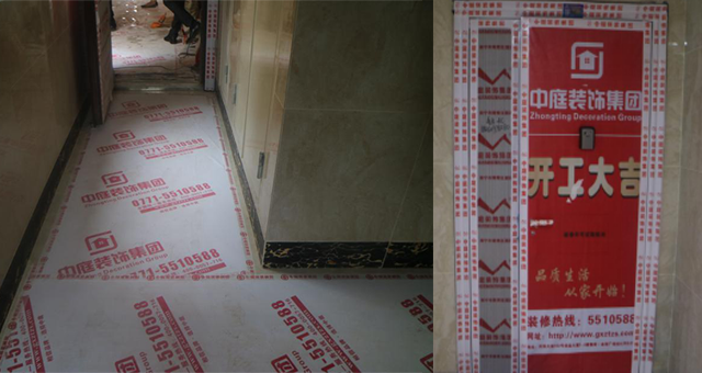 施工前電梯口過道保護及入戶門保護,目的是為了保護公共區域里的公共設施,能有效避免裝修過程中由于意外所造成不必要的困擾和糾紛。