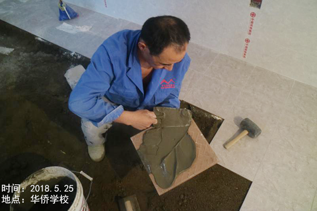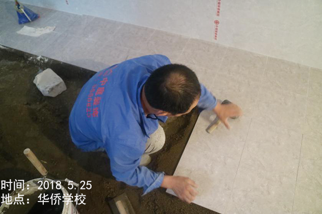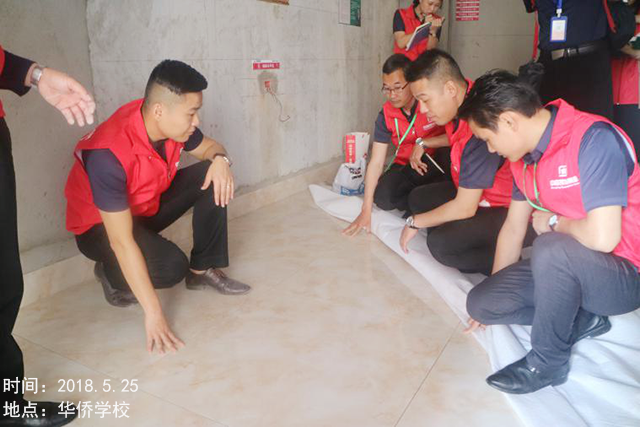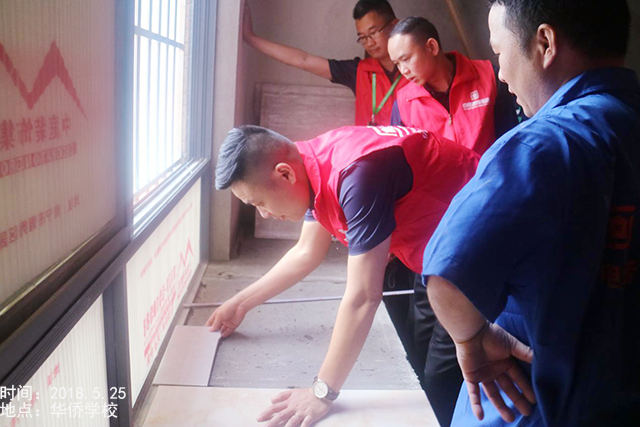 巡檢小組檢驗(yàn)地磚鋪設(shè)的平整度,沒有發(fā)現(xiàn)拱背現(xiàn)象