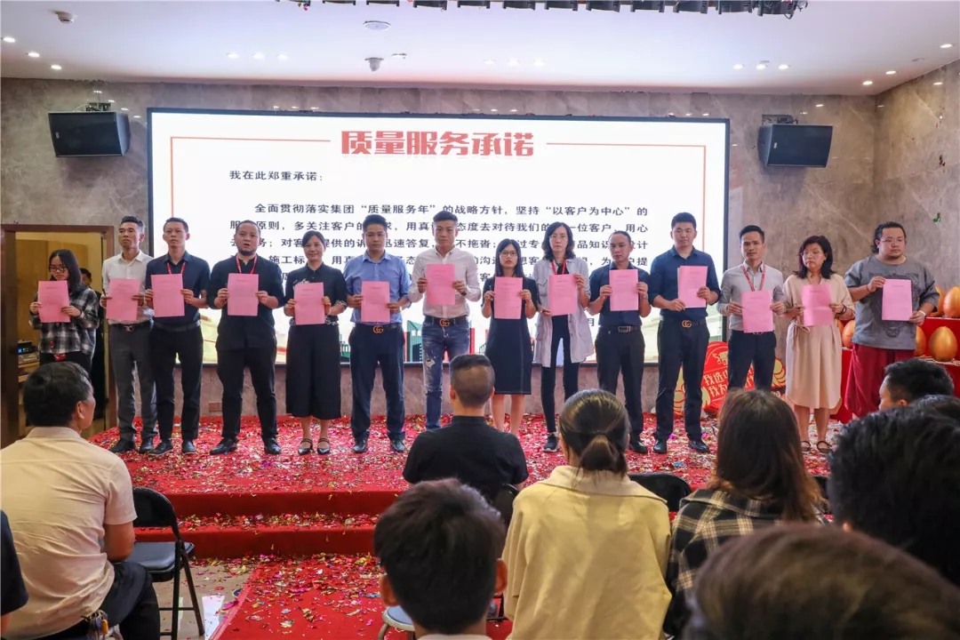 以客戶為中心,為貫徹集團“質量服務年”方針,持續提升工地質量,加強各部門服務意識,打造服務品牌,為客戶提供更專業、優質、熱情周到的服務。集團在5月份隆重開展優質服務月活動,并于5月5日晚上在集團總部舉行活動啟動儀式。
