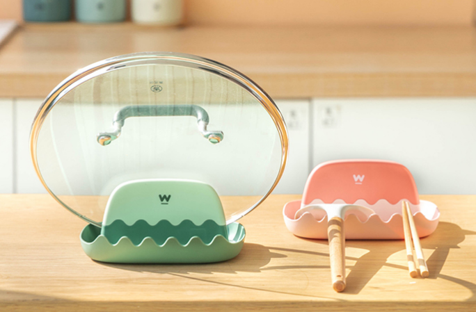 鍋鏟架有4個卡槽,可放鍋鏟、勺子,還可收納鍋蓋,適合大的小的鍋蓋,像奶鍋、湯鍋、炒菜鍋 ,這些鍋的蓋子都能放。