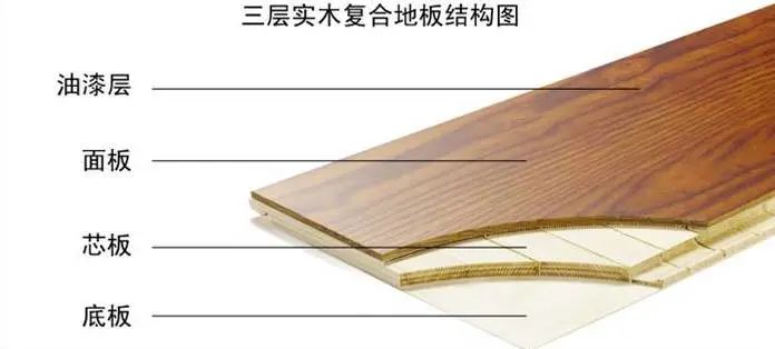 三層實木復合地板,由三層實木單板交錯層壓成,分為三個部分:表層、芯層和底層。