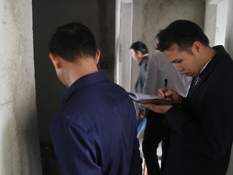 丁總與質檢小組一同與項目經理進行溝通,聽取項目經理的心聲和意見,并強調了規范施工、文明施工、抓品質、做服務的重要性,必須要嚴格按照公司規定及標準進行施工。