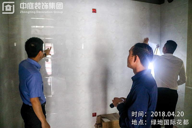墻磚鋪貼四角沒有對平,現場砸無赦,并對項目經理及監理且相關部門經理進行處罰,責令整改。
