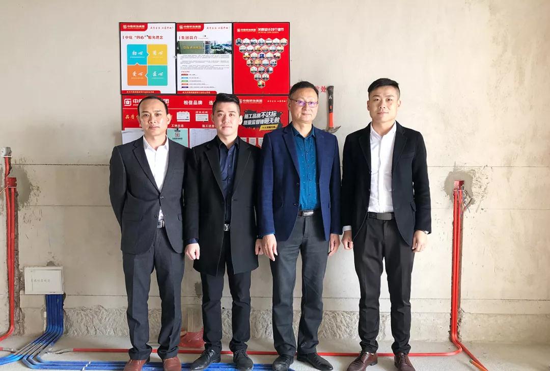 在參觀完中庭裝飾集團展示廳及樣板房后,丁總及集團領導陪同洪斯君先生一起來到了新民宿舍的工地,現場進行巡查和指導工作。