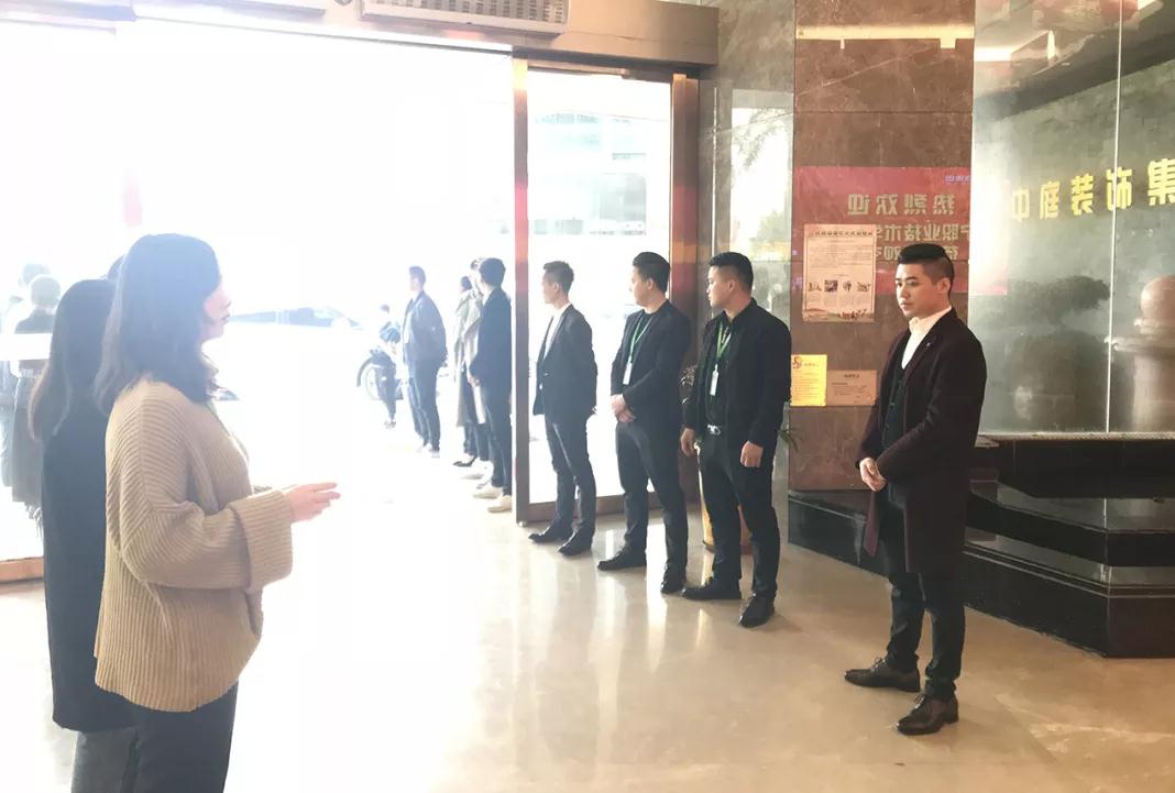 中庭裝飾集團家人在集團大門列隊迎接,對南職師生的到來表示熱烈的歡迎。