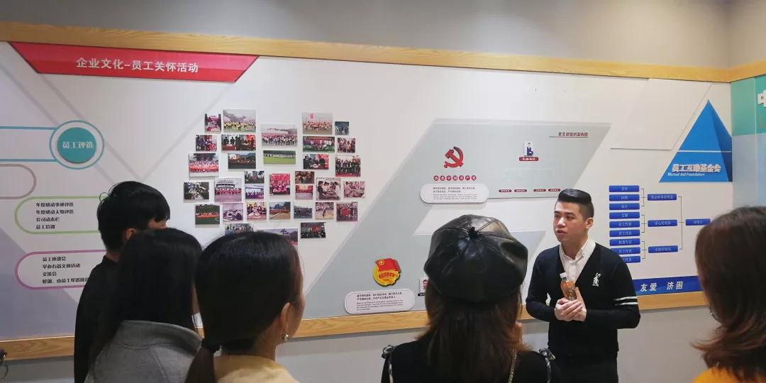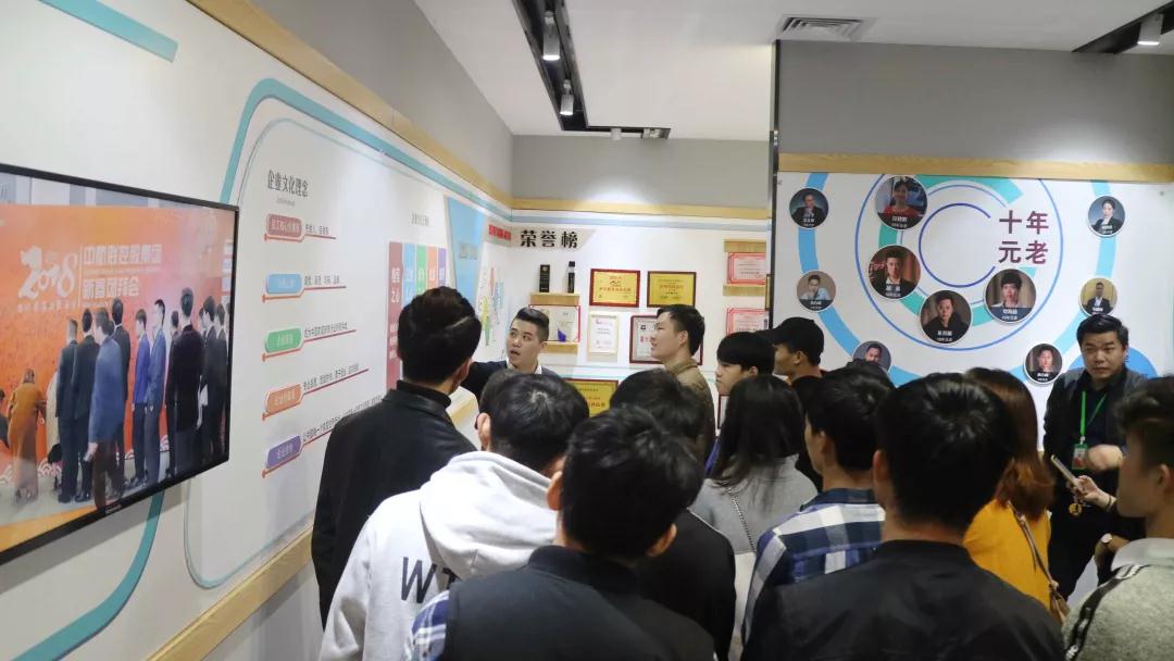 張總帶領(lǐng)學生參觀中庭裝飾集團文化長廊,給同學們介紹了關(guān)于中庭裝飾集團組織架構(gòu),企業(yè)愿景、使命、價值觀以及人文關(guān)懷,愛心公益等方面的企業(yè)文化。