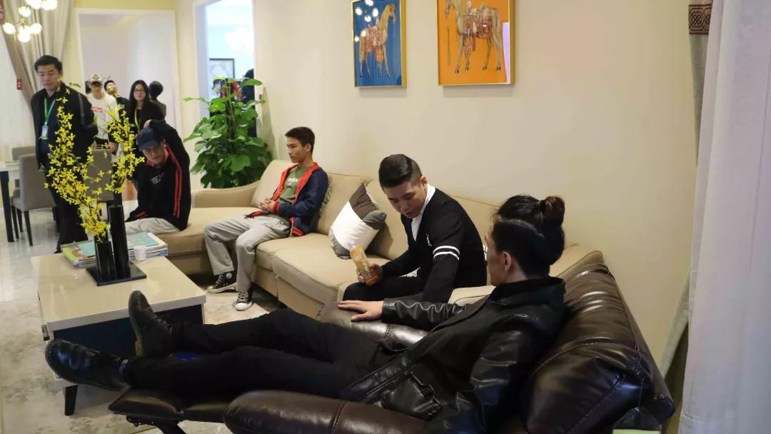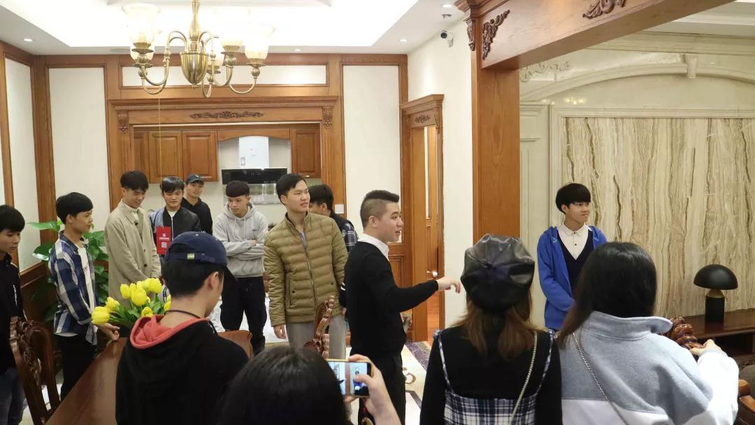 中庭裝飾集團二樓擁有9個設(shè)計風格的樣板間,張總和楊總帶領(lǐng)學生參觀各大風格樣板間,給同學們講解樣板間的設(shè)計風格,感受其中的設(shè)計細節(jié)。