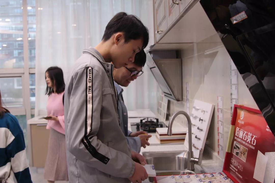 在廚房展示區(qū),設(shè)計部經(jīng)理韋昌豪和學生分享:“如果同學們今后決心要成為一名設(shè)計師,現(xiàn)在開始就要關(guān)注一些基礎(chǔ)的設(shè)計上的問題,對廚房的配置多做基礎(chǔ)的了解,平時也可以自己拿尺子量一些門、窗的尺寸。設(shè)計源于生活,設(shè)計師做出的設(shè)計也要根據(jù)現(xiàn)實生活來落地。”