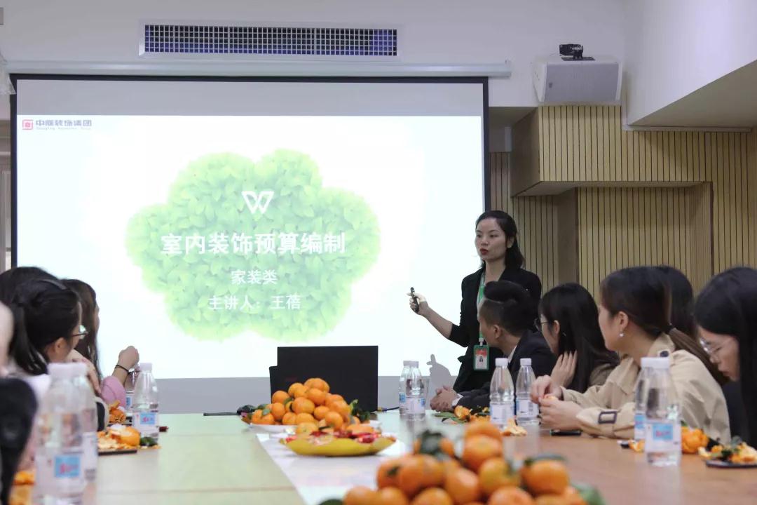 我們請到了預決算部經(jīng)理王蓓來給學生們講解室內(nèi)裝潢的預算組成部分。