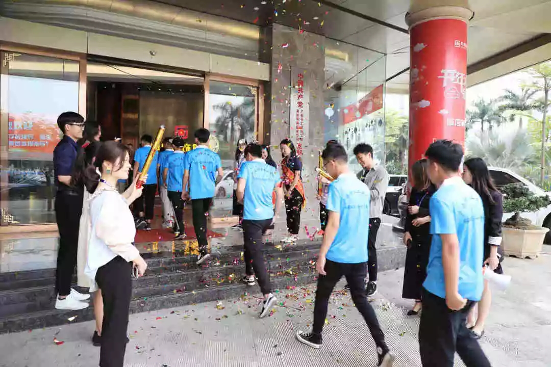4月10日,在繽紛多彩的禮花中,在集團(tuán)員工熱烈的歡迎下,廣西紡織工業(yè)學(xué)校150多位師生來(lái)到集團(tuán)參觀交流,洽談校企合作事宜。