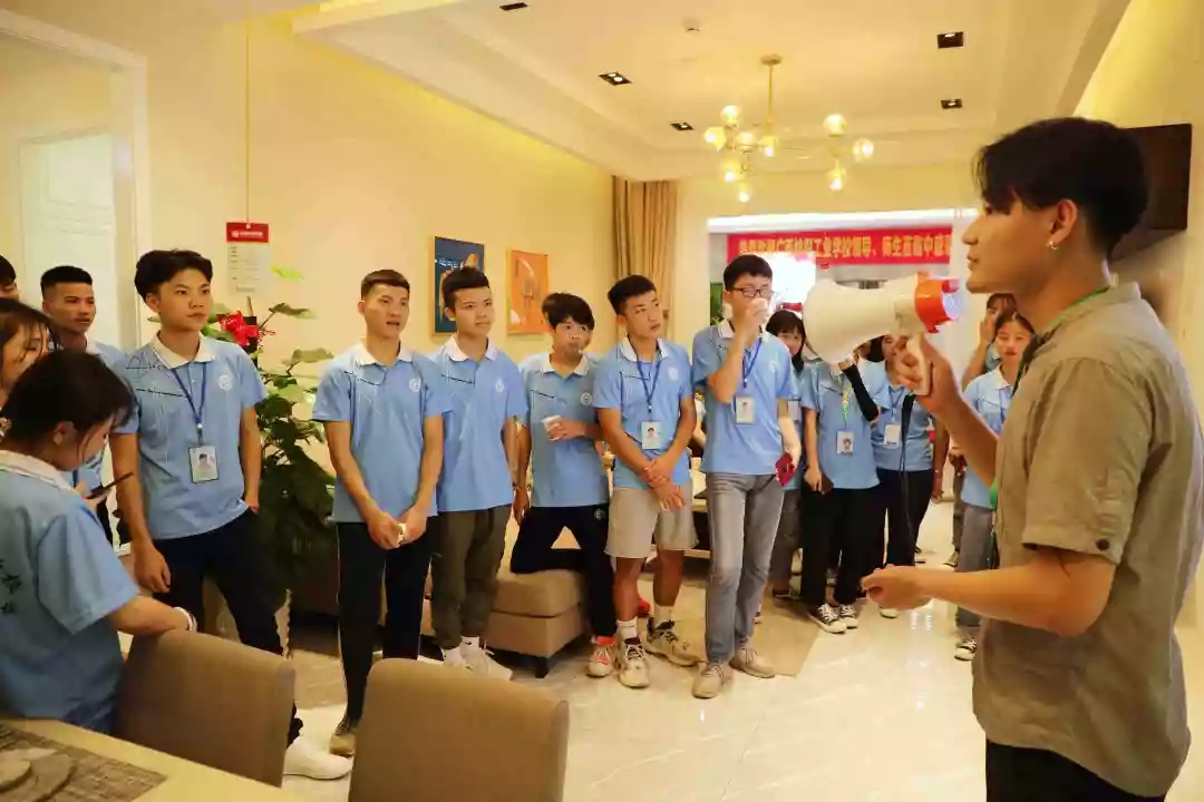 運(yùn)營(yíng)部設(shè)計(jì)經(jīng)理韋昌豪帶領(lǐng)學(xué)生參觀軟裝體驗(yàn)館、工藝樣板間,講解裝修設(shè)計(jì)、裝修工藝、水電工程用料方面的知識(shí),并解答學(xué)生們的疑問(wèn)。