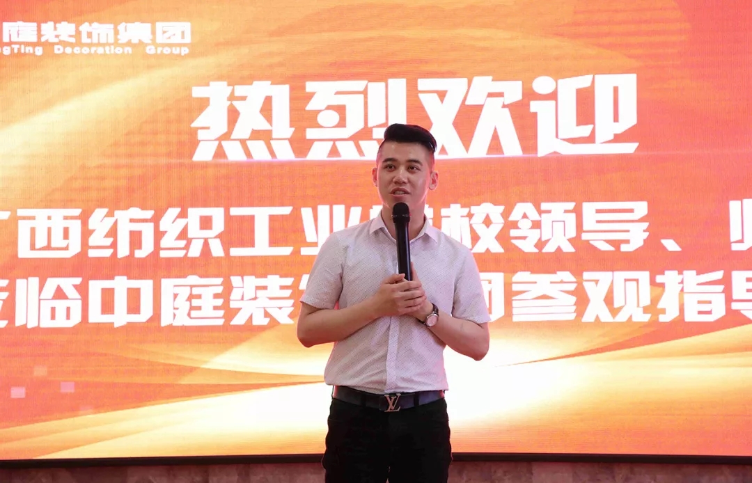 企業(yè)宣講交流會(huì)上,袁總向廣西紡織工業(yè)學(xué)校師生系統(tǒng)介紹了中庭裝飾集團(tuán)的發(fā)展歷程、高端設(shè)計(jì)服務(wù)理念、未來(lái)的發(fā)展規(guī)劃以及各部門(mén)崗位職能、就業(yè)能力要求等,讓學(xué)生更加深入了解集團(tuán),同時(shí)也讓有志來(lái)集團(tuán)發(fā)展的學(xué)生明確了未來(lái)的學(xué)習(xí)及自我能力提升方向。