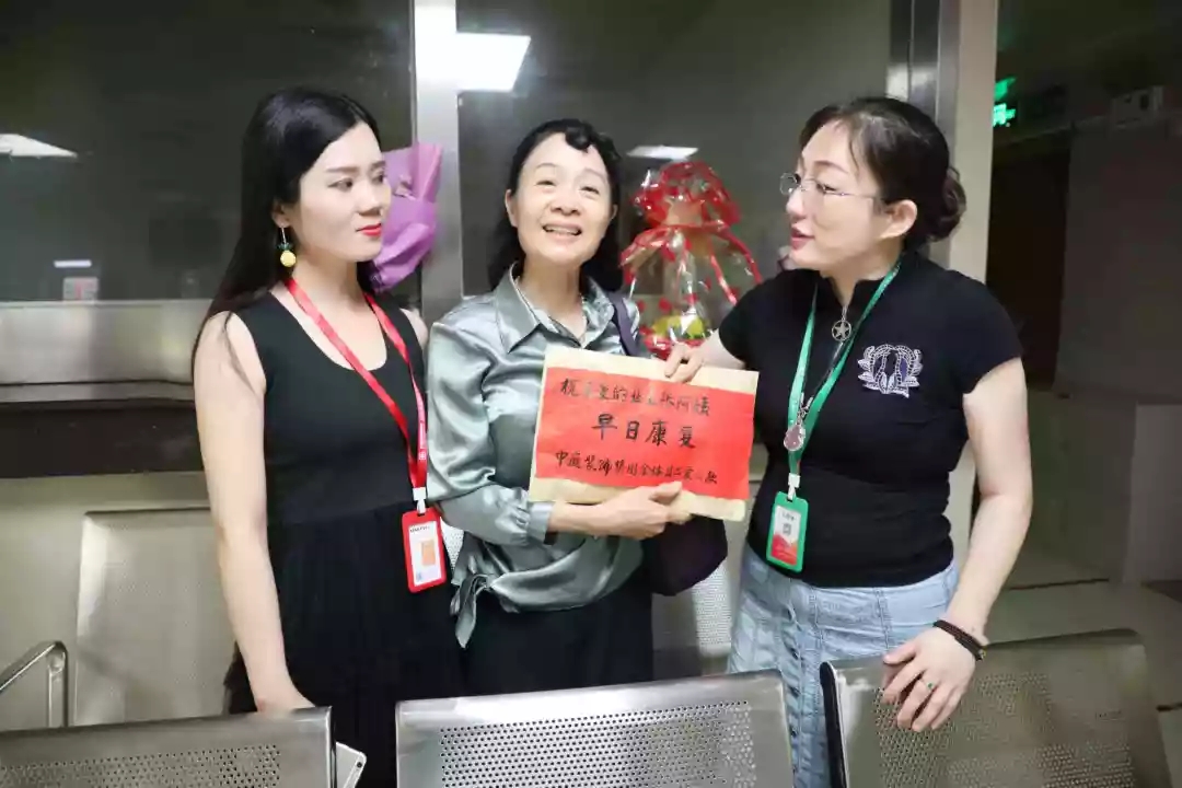 總經理助理韋基媚、行政部經理楊榮芳代表集團,帶著愛心款去到醫院看望張阿姨,為張阿姨送上集團全體員工的一份愛心。