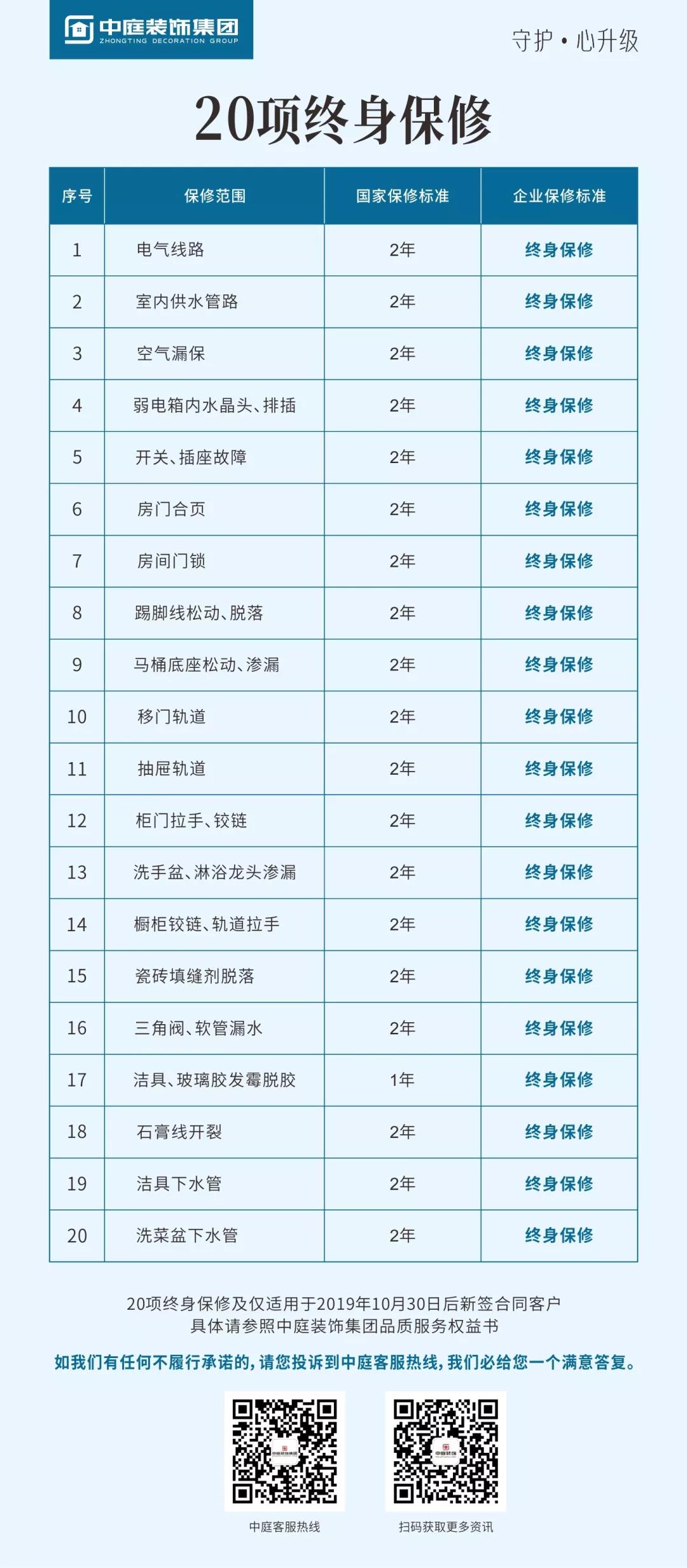集團(tuán)率先在廣西在家裝行業(yè)提出20項(xiàng)客戶最為關(guān)注的終身保修,以及36項(xiàng)砸無赦項(xiàng)目承諾,對(duì)于不達(dá)標(biāo)的施工施行“零容忍”,以更嚴(yán)格的施工標(biāo)準(zhǔn)為品質(zhì)家保駕護(hù)航。