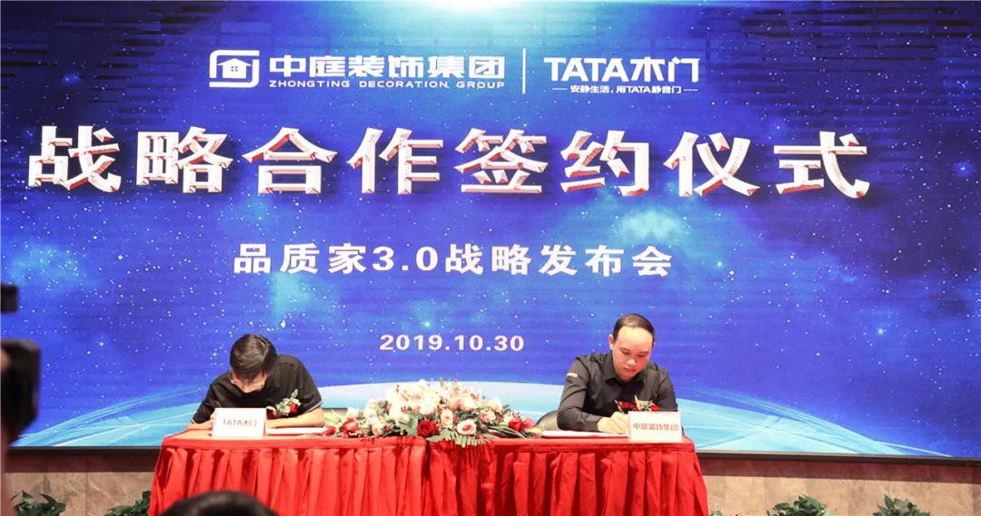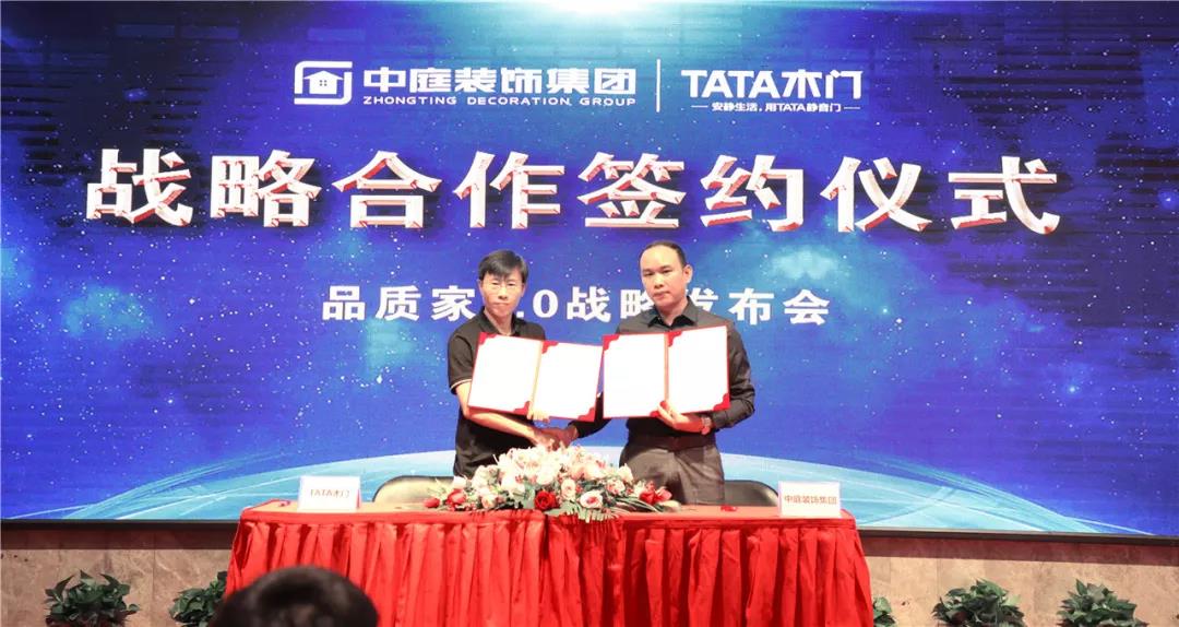 ▲集團(tuán)副總裁吳文戰(zhàn)與TATA木門渠道部經(jīng)理李笑寒簽署戰(zhàn)略合作協(xié)議