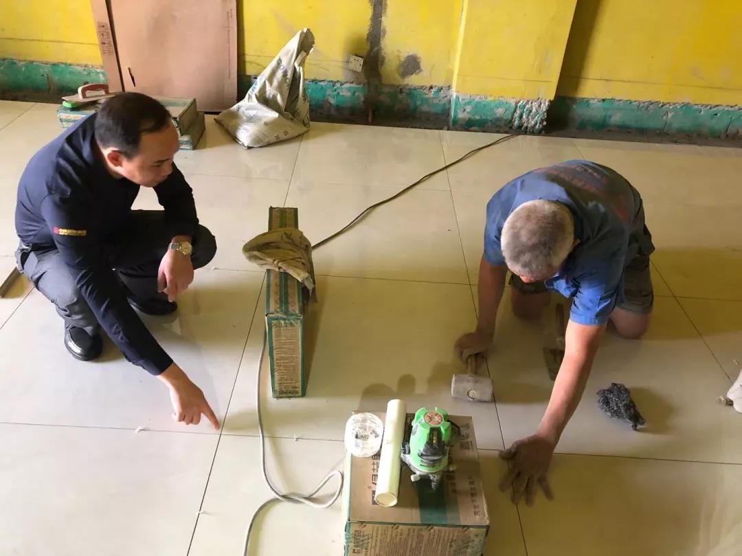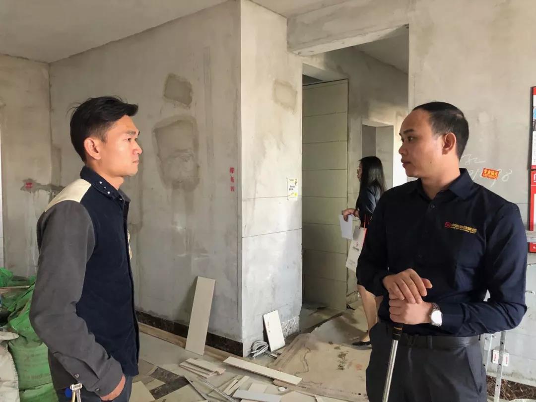距離廣西教育廳住宅裝修集體開工儀式已過去一月有余,部分工地施工相繼進入鋪磚階段。作為教育廳住宅裝修工程總指揮,肩負著集團的使命和業主朋友們的信任,集團副總裁、工程質量管理中心總經理吳文戰時刻牽掛著教育廳工地進展情況。10月30日,吳總帶領質管中心工程管理團隊赴工地現場對工程材料、質量和服務三大項進行突擊檢查!