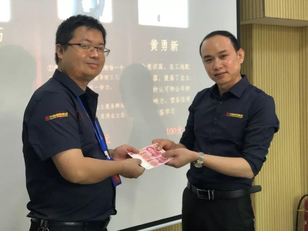 工程質量管理中心總經理吳文戰給10月表現優秀的家人頒發獎勵: