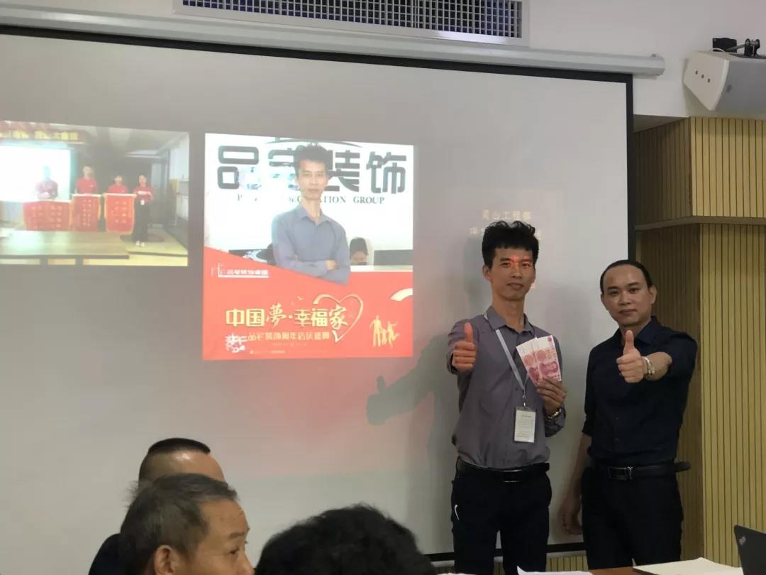 吳總(右一)為項目經理殷傳高頒發月度獎金