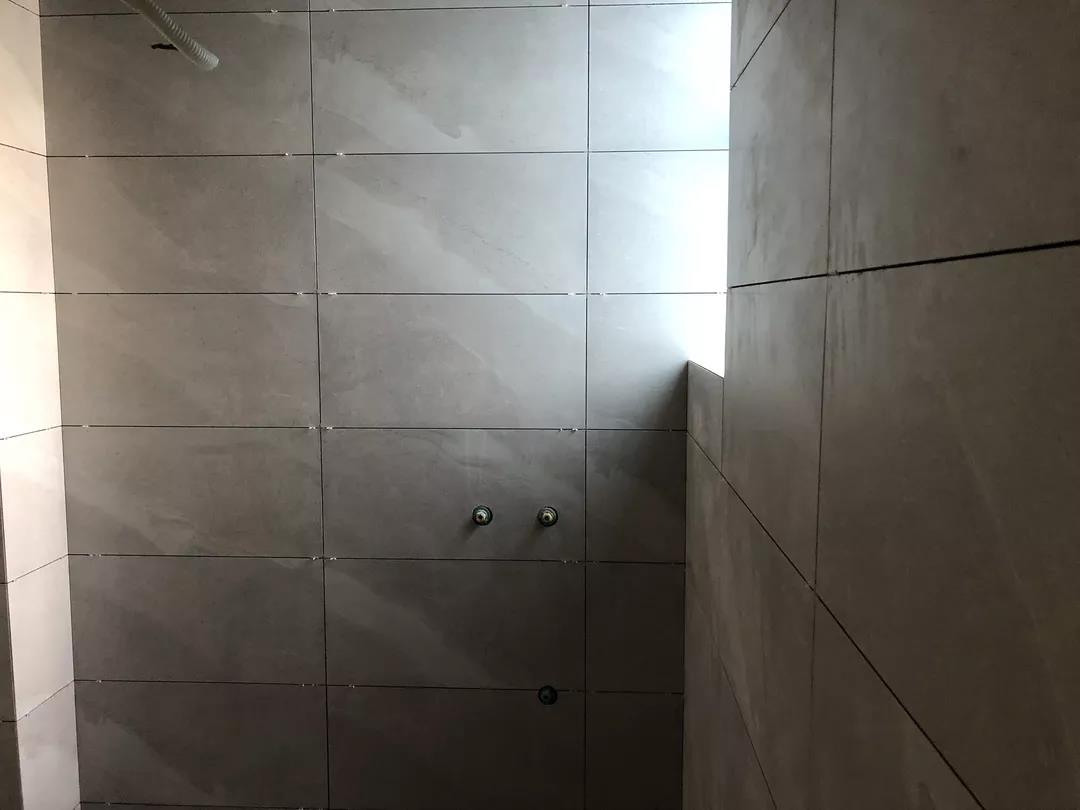 ▲每個區域鋪貼完畢后必須用薄膜封閉,并關閉貼磚區域的門窗,防止風干過快。