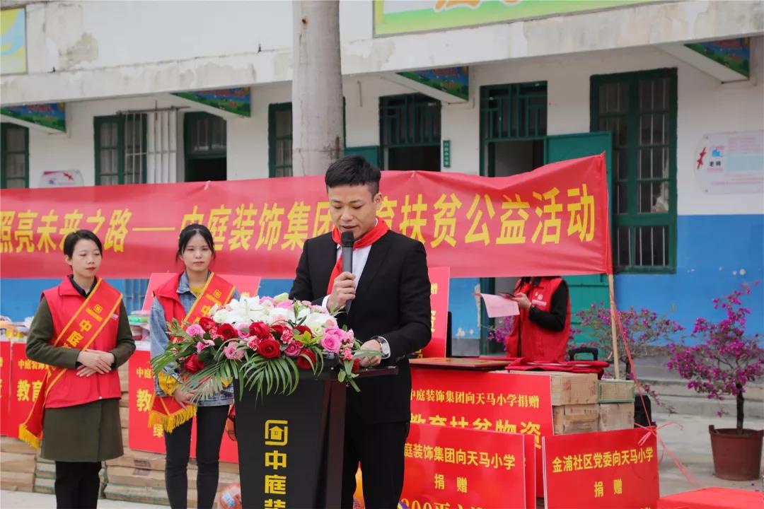 秉承著“源于社會,回饋社會”的社會責任理念,在中庭裝飾集團九周年慶之際,集團攜手戰(zhàn)略合作伙伴組成愛心助力團前往武鳴區(qū)天馬村天馬小學開展教育扶貧公益活動。