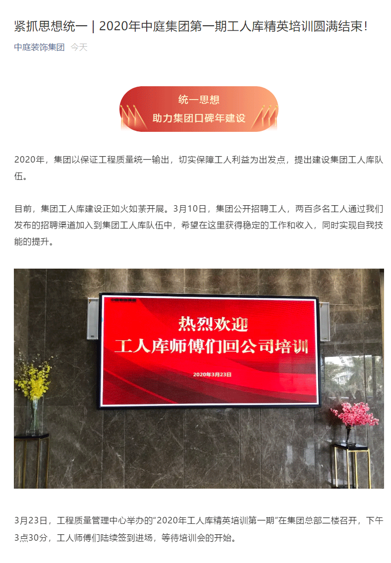 緊抓思想統(tǒng)一 | 2020年中庭集團(tuán)第一期工人庫精英培訓(xùn)圓滿結(jié)束!