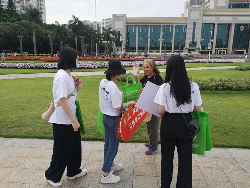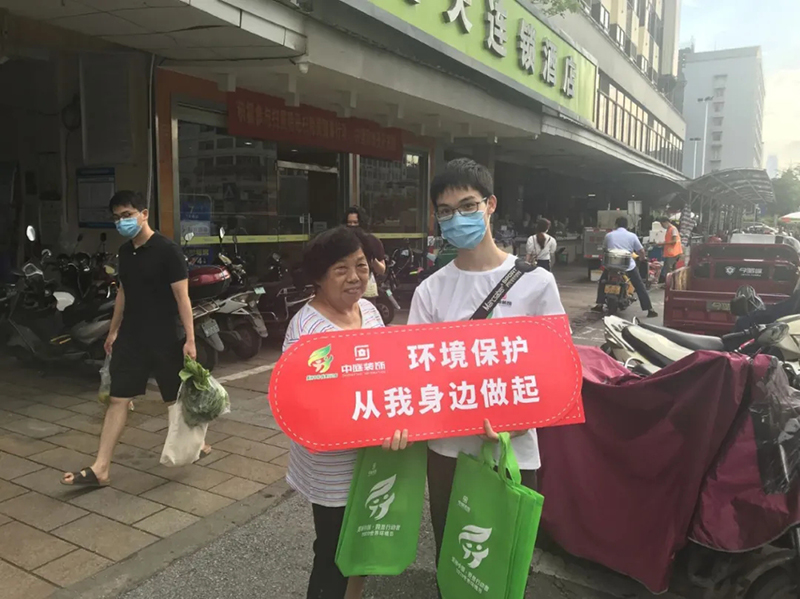 中庭環保袋走進社區、走進地鐵、走上街頭,將環保意識傳遞給了老人,剛剛下課的孩子,辛勤工作的人們,提倡大家以后都用環保袋出行購物,盡量減少塑料袋的使用。