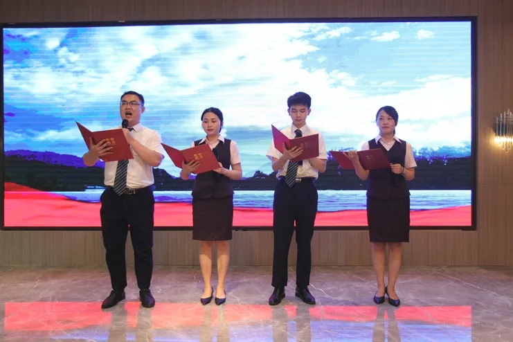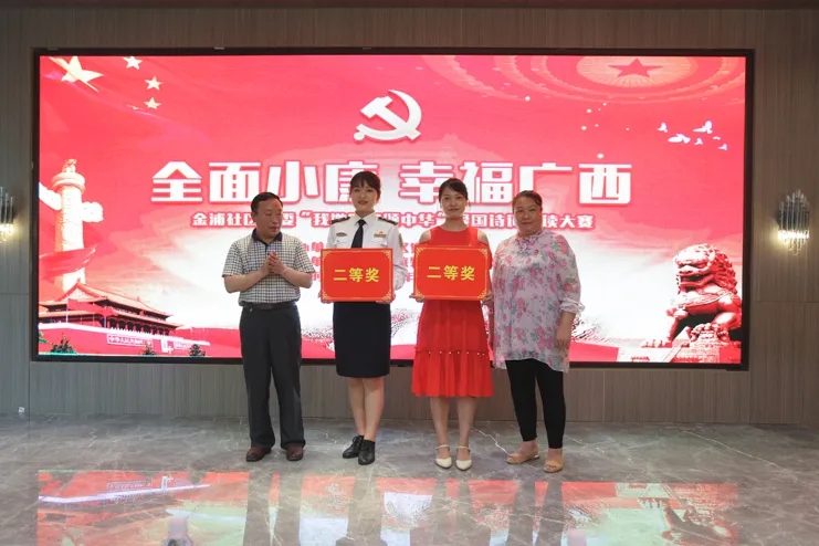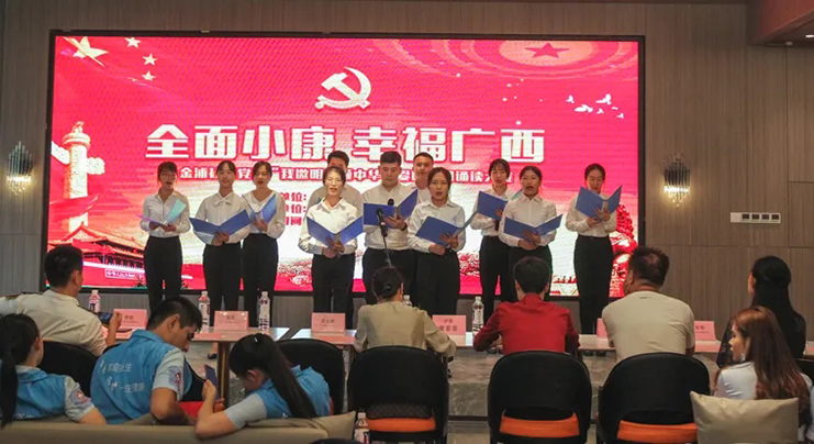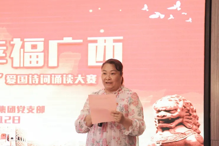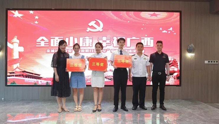 6月12日,在“七一建黨節”來臨之際,由浦社區黨委主辦、中庭裝飾集團黨支部協辦的“全面小康 幸福廣西”愛國詩詞誦讀大賽在集團二樓大廳成功舉辦。南寧市稅務局機關黨委、廣西海事局機關黨委、招商銀行金浦路支行黨支部、竹溪社區衛生服務中心黨支部、廣西金孟錳業有限公司黨支部、同方知網黨支部、中庭裝飾集團黨支部、北京外企人力資源黨支部、金浦社區轄區各級黨組織參加了本次活動。