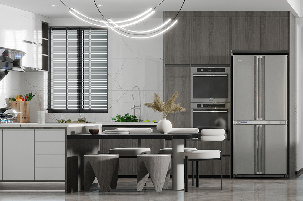 瀏覽量:323江灣山語城126m2案例,本方案以現代輕奢風格為主,輕是一種優雅的態度,低調舒適,但不損害高貴優雅;奢侈是一種既不讓人有壓力又追求品質和精致生活的狀態。整體色調以灰白為主,黑色為點點綴色,冷端搭配無疑是最好的搭配方式。現代輕奢家具的造型一般以矩形為基本框架,板件的邊角又巧妙的運用了橢圓型處理,使用大量精巧優雅的弧線設計,富有韻律之美,溫文爾雅、卓越超群。頗具前瞻性、不拘一格的設計理念,迎合新貴一族的審美品位。