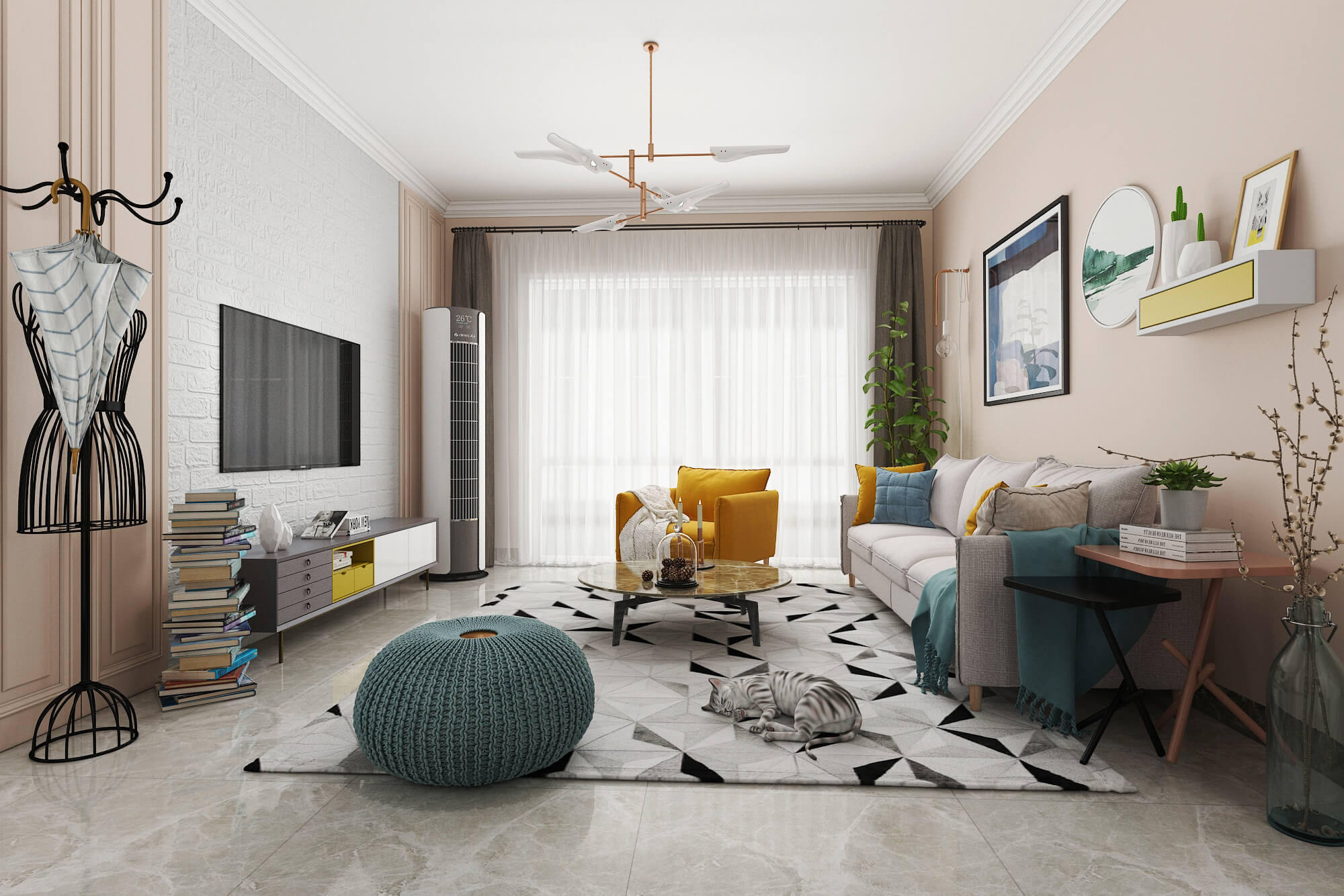 本案為總面積115㎡的北歐風格案例,設計師以自然,簡約為設計理念,在北歐風格的基調上加入了現代的元素,淡木色的柜體、灰白色的沙發、奶咖色的墻漆,力求更有溫度的家居氛圍。在溫馨的包裹感中讓居住者盡情享受屬于他們的浪漫生活。