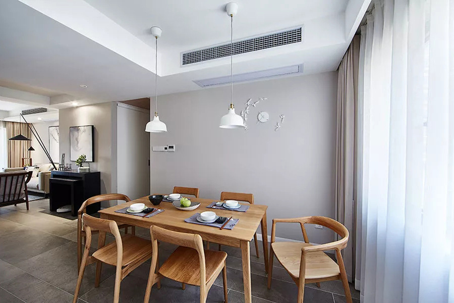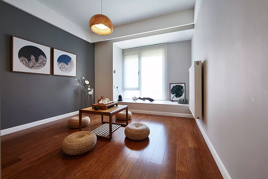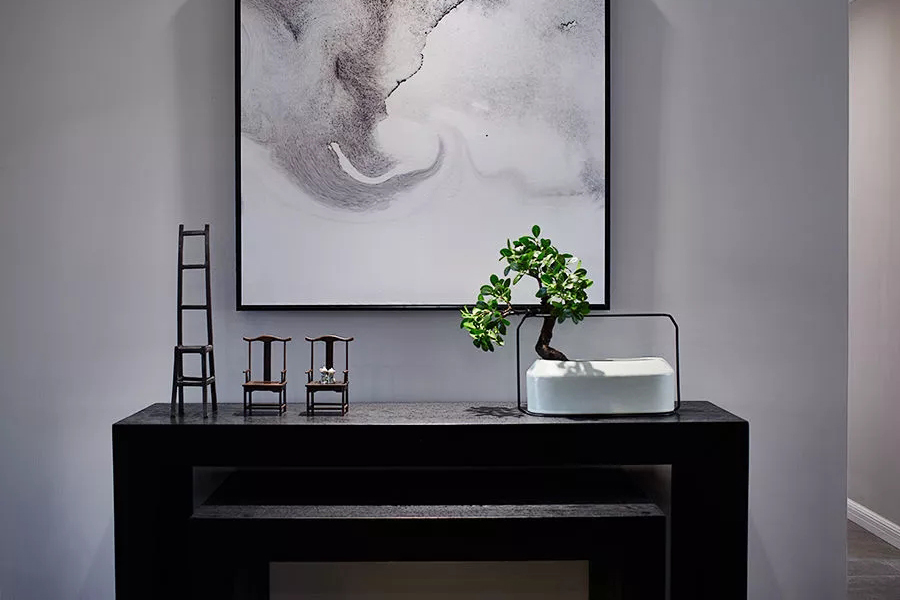 江灣山語城150㎡新中式風格案例,空間裝飾多采用簡潔硬朗的直線條,在空間中的使用,不僅反映出現代人追求簡單生活的居住要求,更迎合了中式家具追求內斂、質樸的設計風格,使整體空間更實用,更富有現代感。傳統文化在現代空間里優雅互存,將東方的細膩豐富,用現代的方式詮釋。
